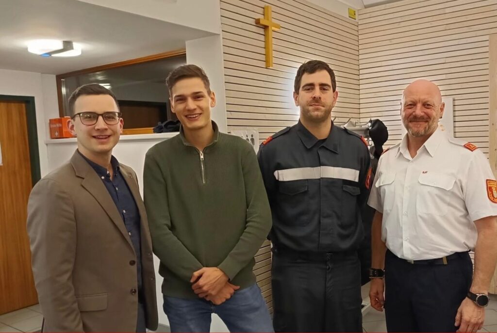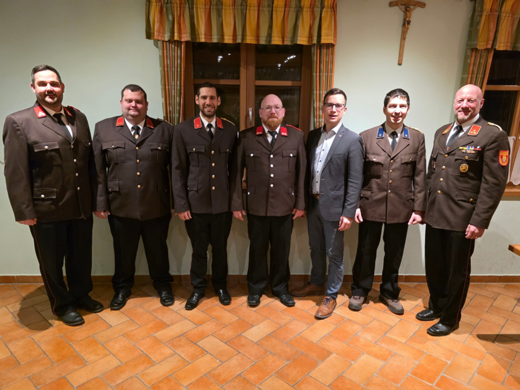 Kiblitz: Bürgermeister Stefan Schröter, Kdt. Stv. Patrick Penninger, Kommandant Lukas Reinwein, UA-Kdt. Josef Wenzl. Verwalter ist Gernot Kraus.