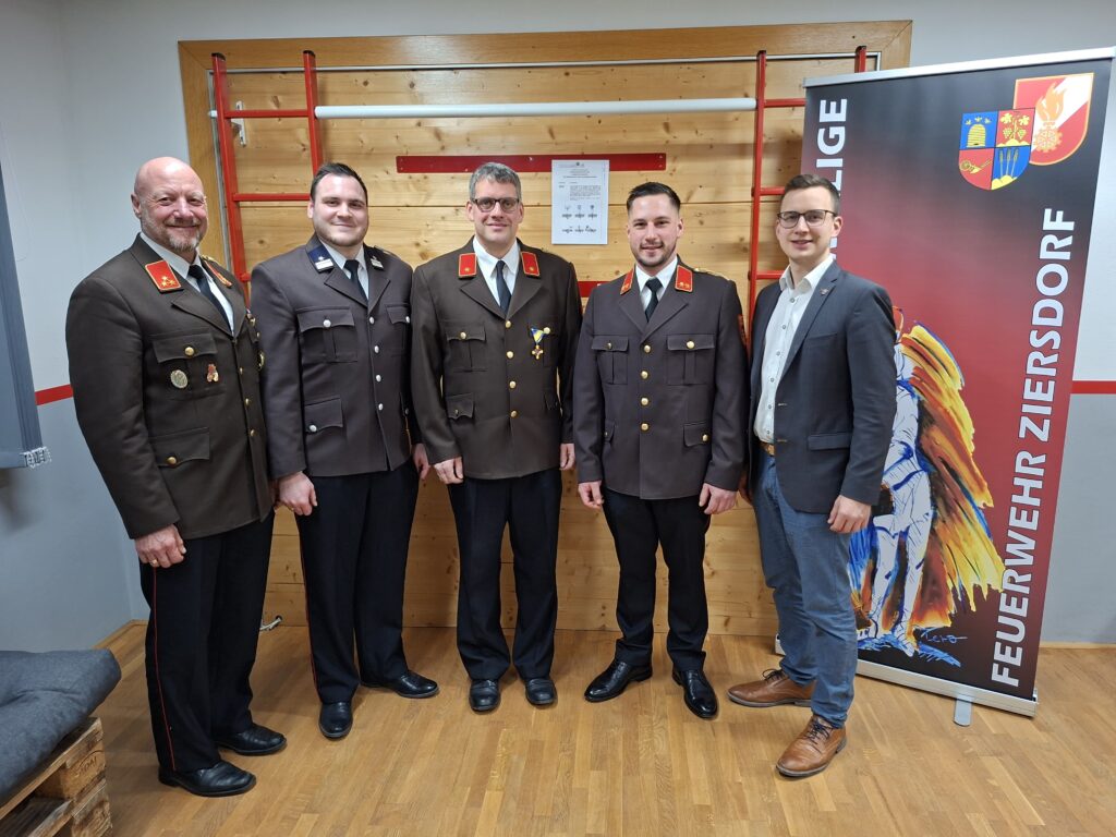 Ziersdorf (v.l.): UA-Kommandant Josef Wenzl, Verwalter Klemens Niederer, Kdt. Stv. Johannes Unfried, Kommandant Marco Eder mit Bürgermeister Stefan Schröter.